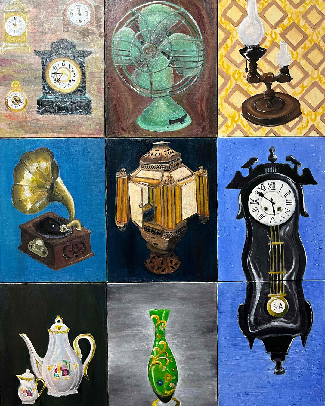 幼少の頃から油絵をはじめ、社会人になってもなお制作を続ける8人がリレー形式で個展を開催する。