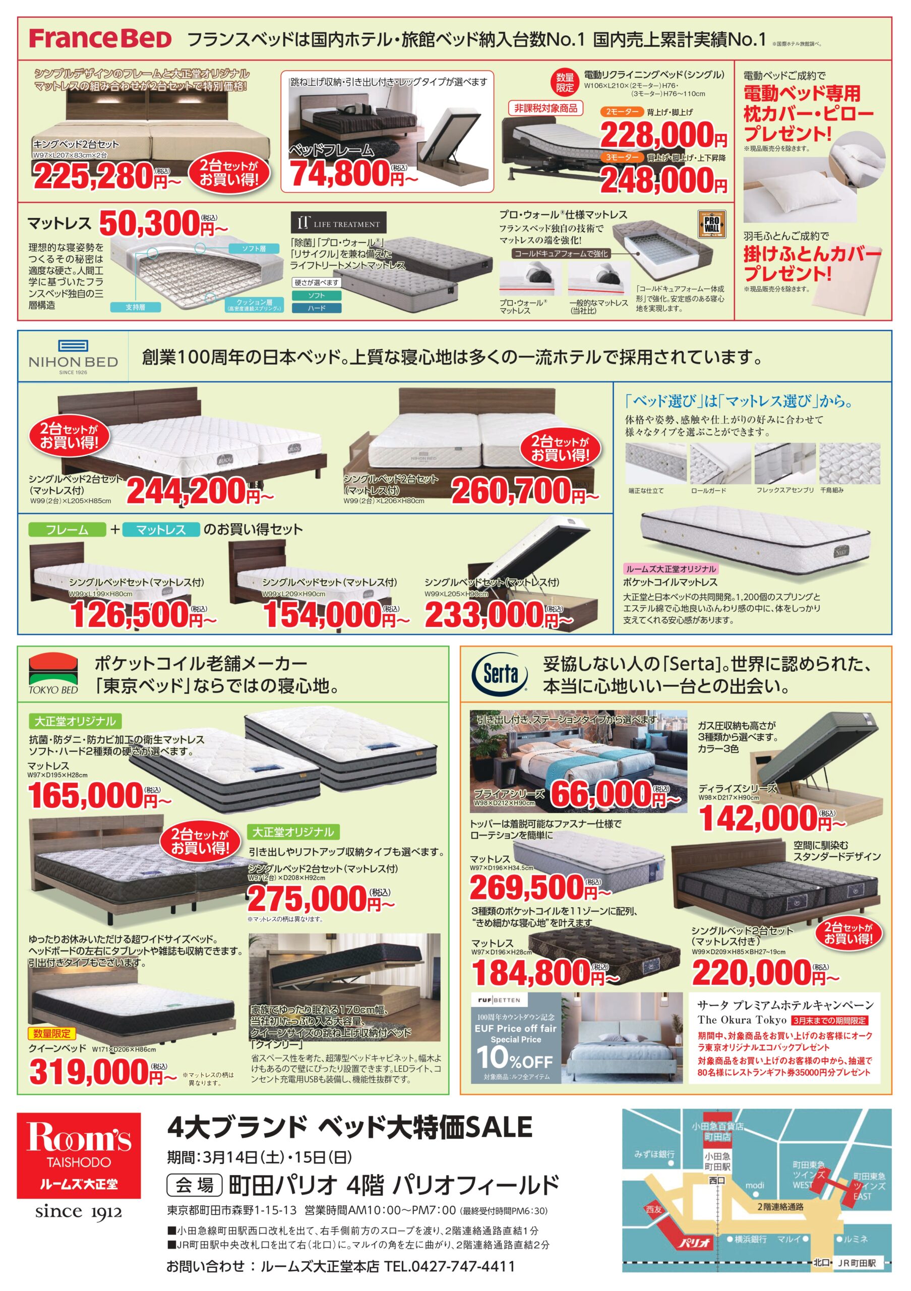 2日間限定!日本のベッドメーカのベッドフレーム・マットレス・電動ベッド・羽毛布団の販売会を開催!