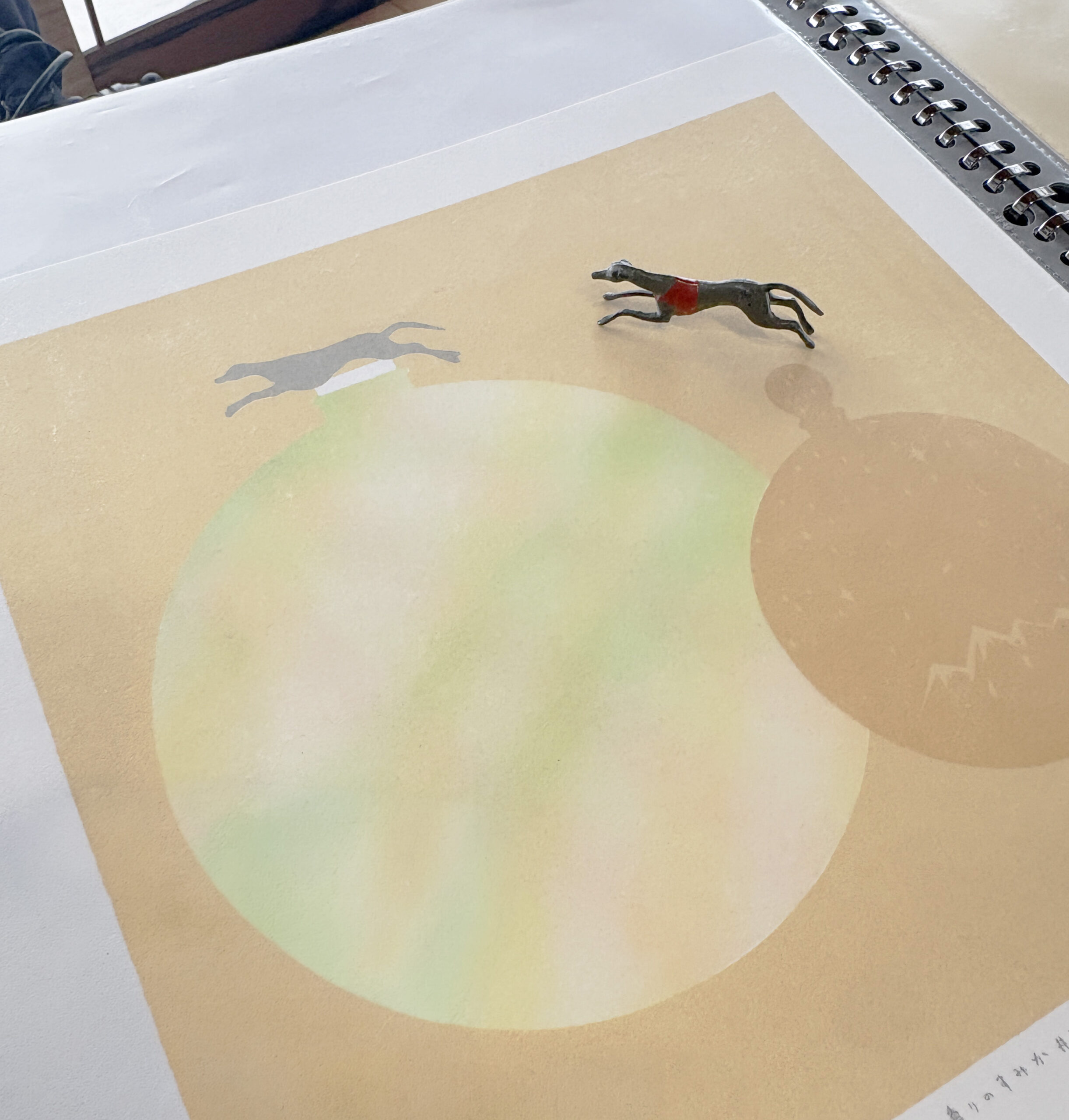 シルクスクリーンの“角度で表情が変わる”という醍醐味は、写真だと平面的に写ってしまいうまく伝わらなくて。いつも個展の時は原画を集めた作品ファイルも持っていって、実物を見てもらうようにしています。本物(原画)しか持っていない質感やきらめきを大事にしたいですね。